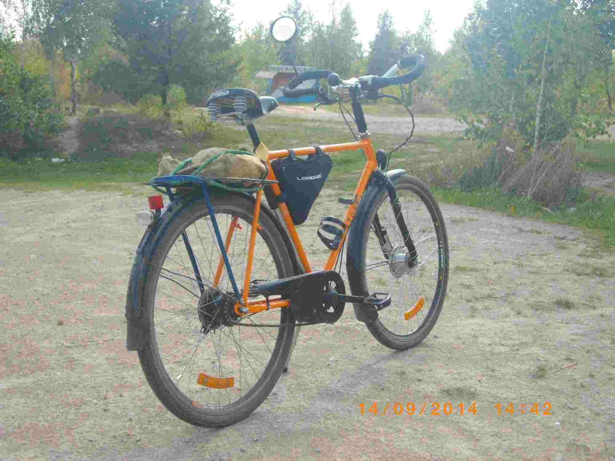 Кстати, у Данилы рама поздняя, с короткими прямыми нижними перьями. Фактически, копирует турист. Поэтому я стартую на его передачи только из-за их общей ненужности на велосипеде. Если б была более старая Украина - я б бурчал про горбатого и стенку :D .