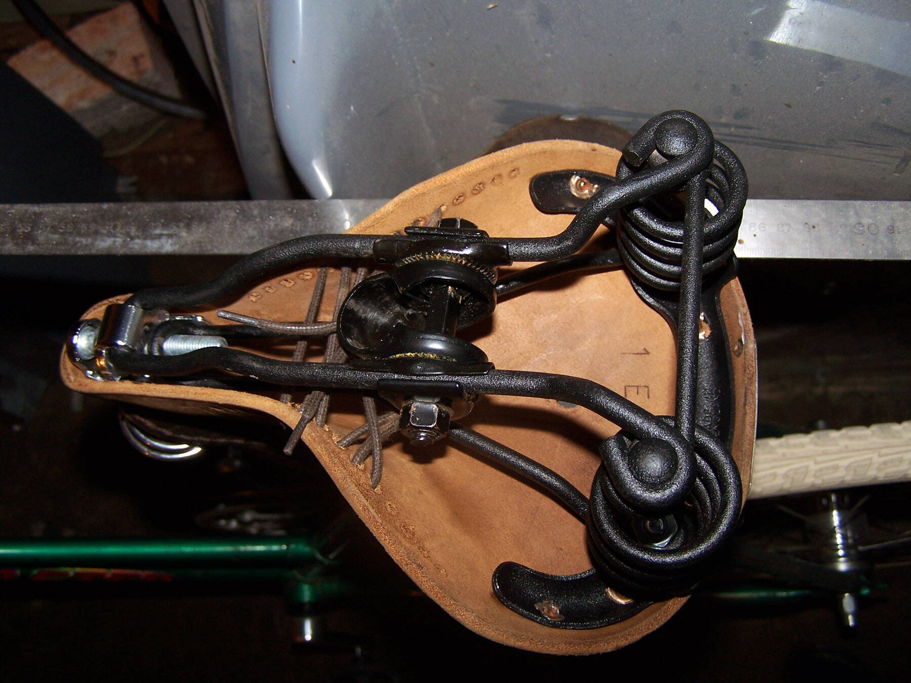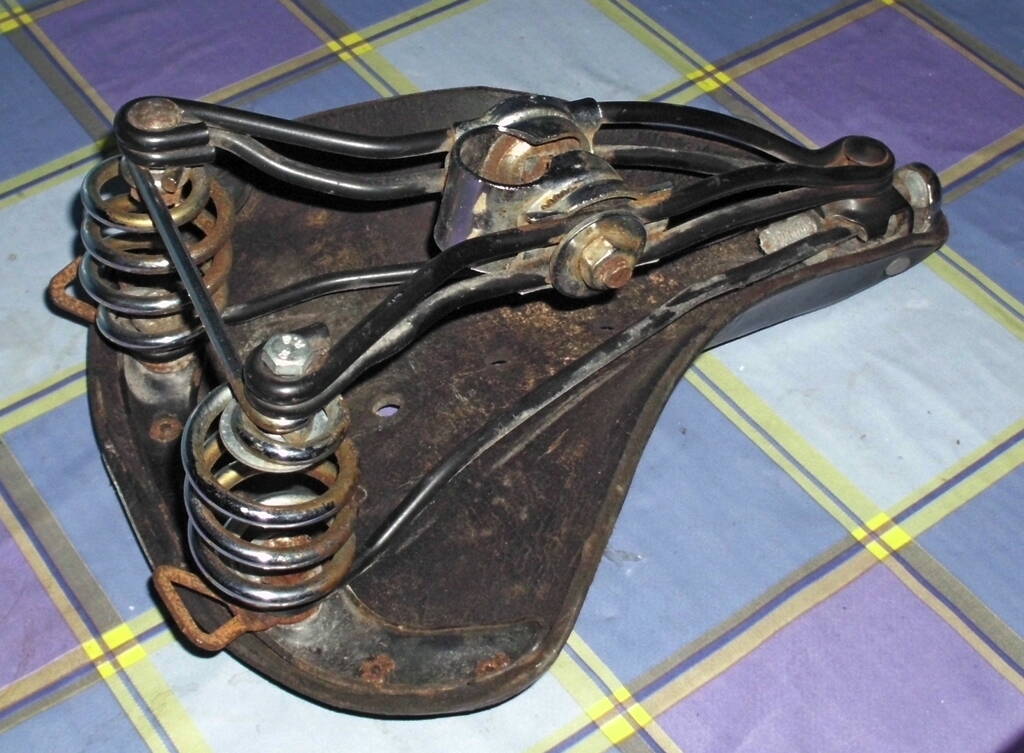 Седло ХВЗ кожаное спортивное с убитой (вообще полностью - оторвал и выкинул по дороге) кожей, т.е. только каркас с натяжителем и хомутом - 25 грн летом.