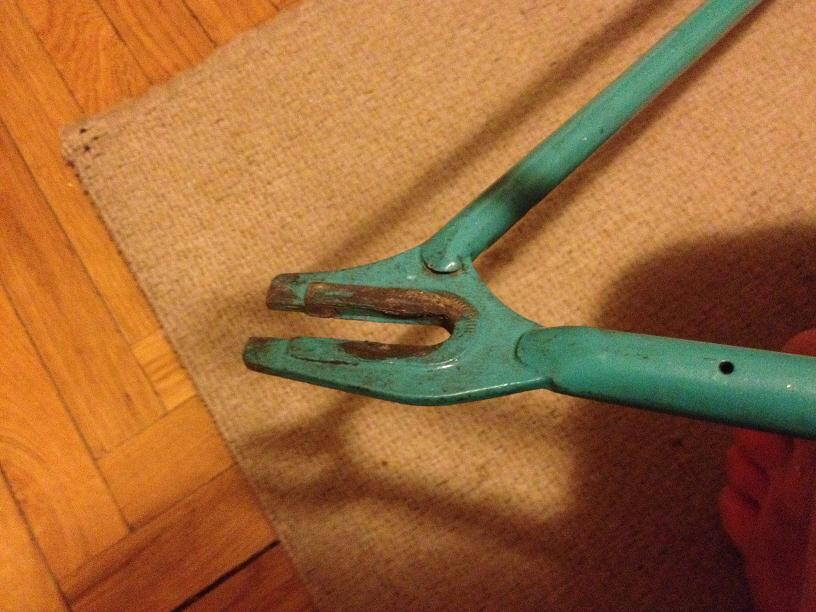 Ей, конечно, досталось сполна. Убитые дропы, плохо пропаяна(хоть в роли фикса проехала подо мной тысячи две. ), вмятина сильная. Не родная вилка.