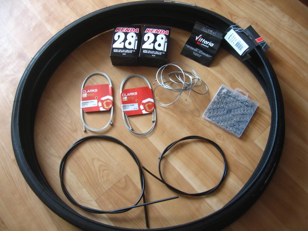 К ним мне подобрали 8-ми скоростную кассету и цепь SRAM, модель не помню сейчас, но что-то из недорогого, т.к. не хотел тратить много денег на это. Потом купил шины Vittoria Zaffiro 28-й ширины и камеры Kenda. Выбирал из того, что было в наших магазинах в наличии (город - СПб).