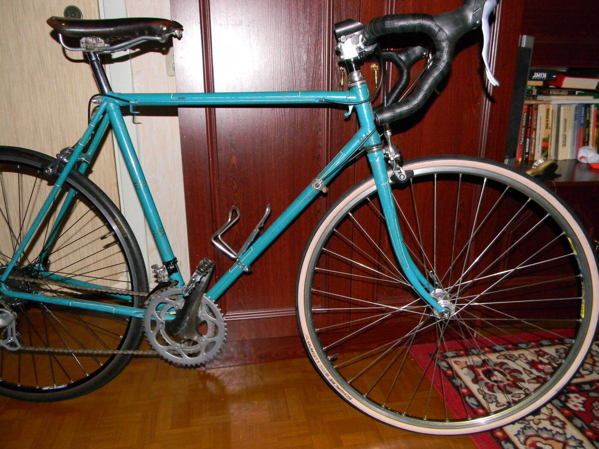 . Фреймсет- "Чемпион" 61 года в оригинальном окрасе. Навеска - всё, что накопилось в "закромах", адаптированное при помощи "напиллинга" с учётом опыта форумчан - крокодиловодов, за что им большое спасибо. Впереди доработка до нормального состояния. Вел очень резвый, сравнительно лёгкий. Думаю, займёт достойное место среди остальных собратьев в моей велоконюшне.