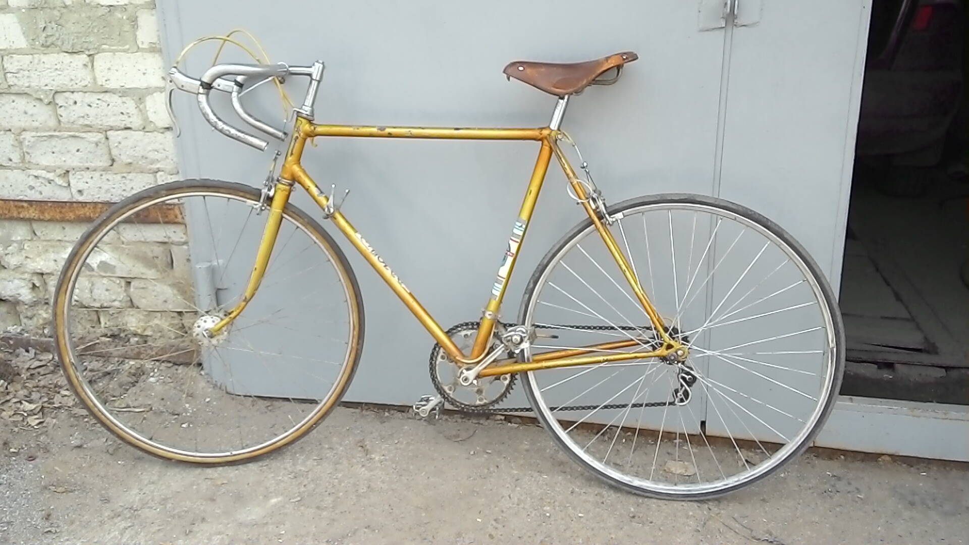 Руль не оригинальный, снятый с какого-нибудь немецкого туриста. Цвет седла тоже менялся в не зависимости от олимпийки. Какие подвозили (московские, украинские, тульские), такое и ставили.