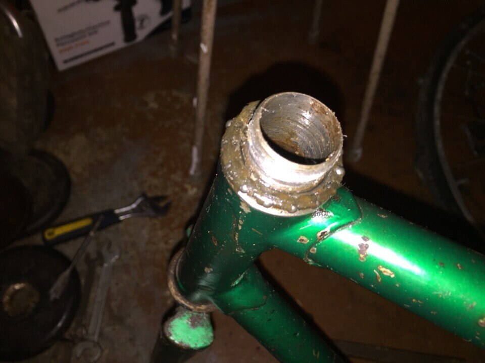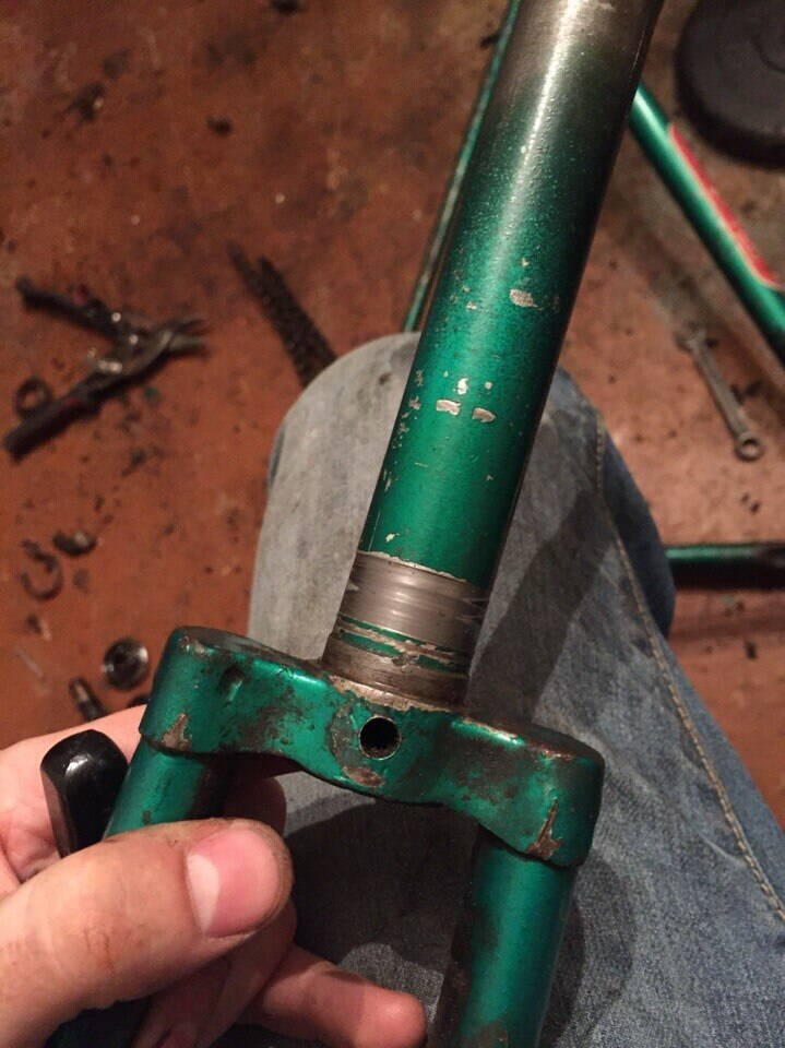 Резьба на вилке съедена, была эпоксидкой залита (вместе с подшипниками).