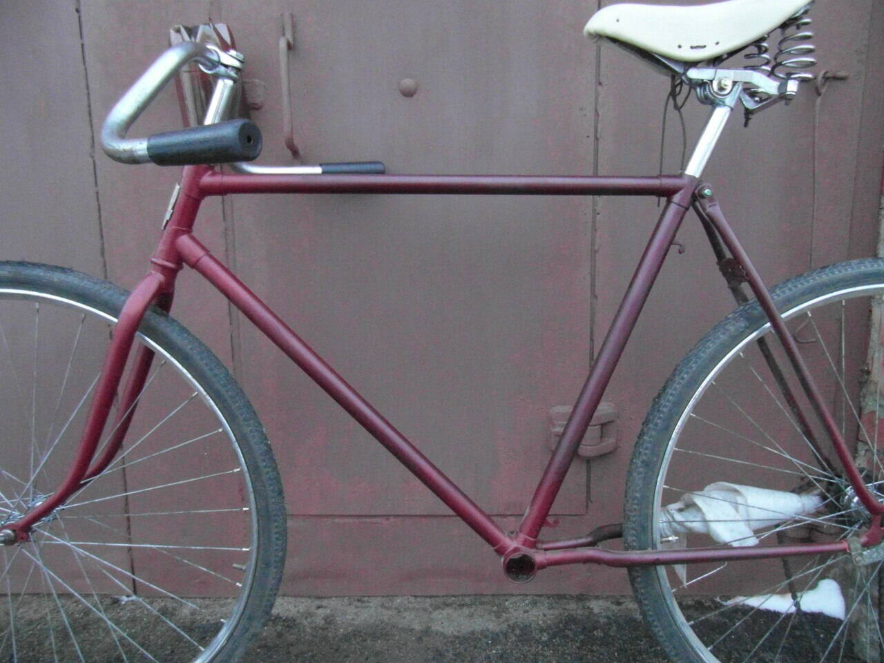 Завалявся у діда в гаражі ржавий Мінськ зі зламаною кареткою... Літом під час загострення велосипедної хвороби було вирішено поставити його на колеса... У погребі дід беріг нові покришки десь 90-х, камери... тому з гумою проблем не було... Також завялались кілька балончиків вишневої фарби різних відтінків...