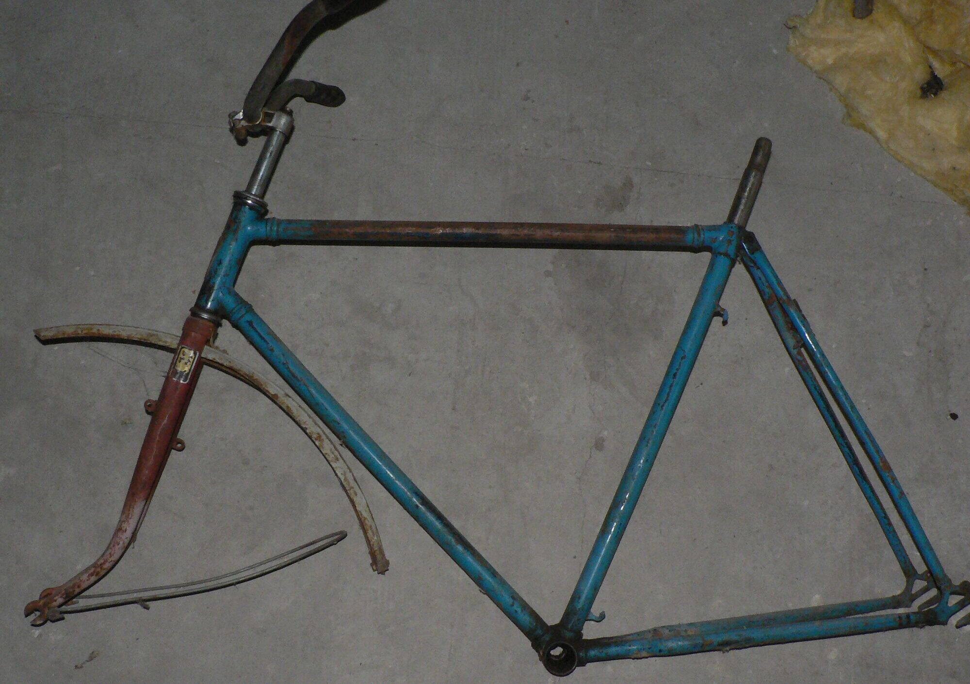 Описание/комплектация: рама, передняя вилка, заднее и переднее крылья, руль с рулевым в сборе, шильдик с птичкой (хром, закрашен)
