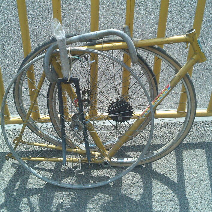 Рама СШ с обломаным дропом, вилка от спутника(судя по всему), переднее колесо СШ и вилсет 26го размера. Думаю на следующий год сделать сингспид в дедовском стиле на втулке торпедо, с багажничном и весь такой в стиле "винтаж" и "раЛитет"))) :facepalm: