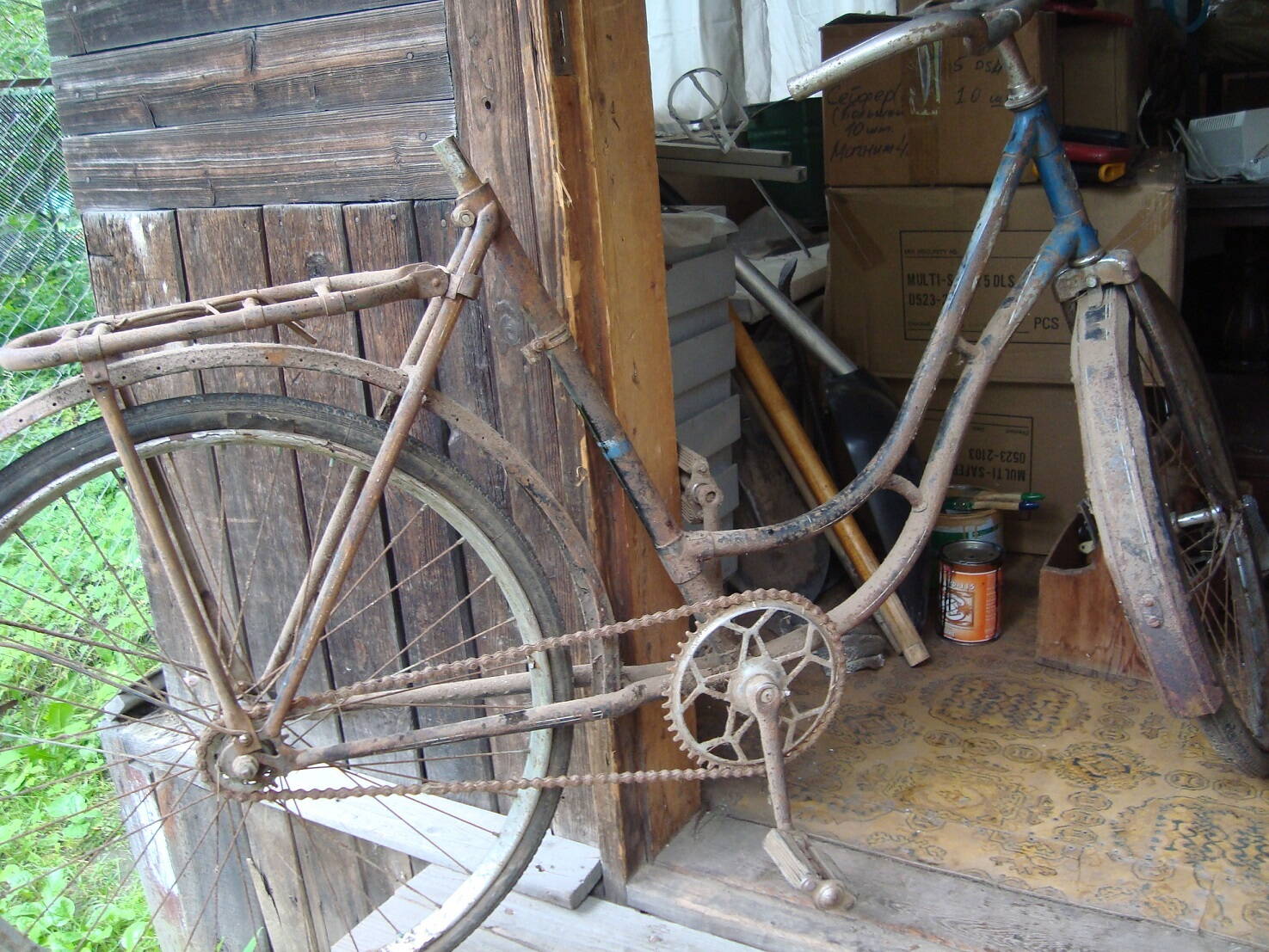 Помыл. Ожидал, что в лучшем состоянии. Неужели это действительно хорошая заготовка? На ободах хрома считай нет. Втулка передняя тоже... А где бы посмотреть как он выглядел изначально. Раму и крылья я то хотел привести в оригинальный цвет. Там переход такой красивый из голубого в черный. Насколько это возможно?