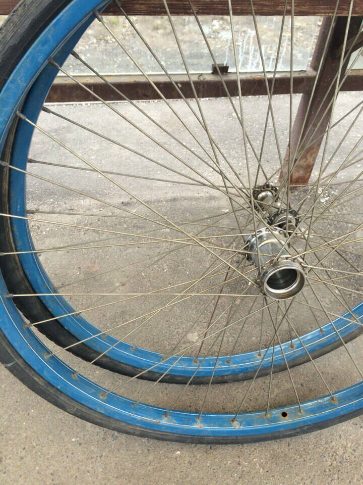 Пока, на первом этапе. пришлось отказаться от родных колёс, поскольку после удаления ржавчины с ободов, в местах сварки, вылезли трещины :cry: