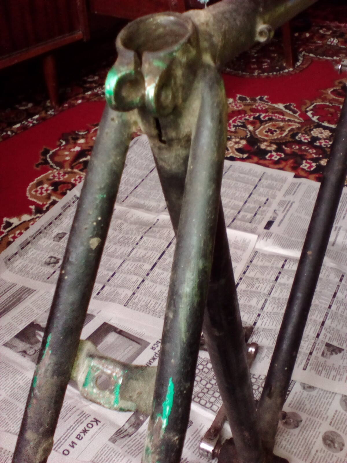 Да, Ваша рама, в отличии от более ранних туристов, имеет уже паршивые штампованые мостики на точечной сварке (их бы пропаять), но в отличии от более поздних - ещё красивую рулевую с "хохломой" а не простую штампованую.