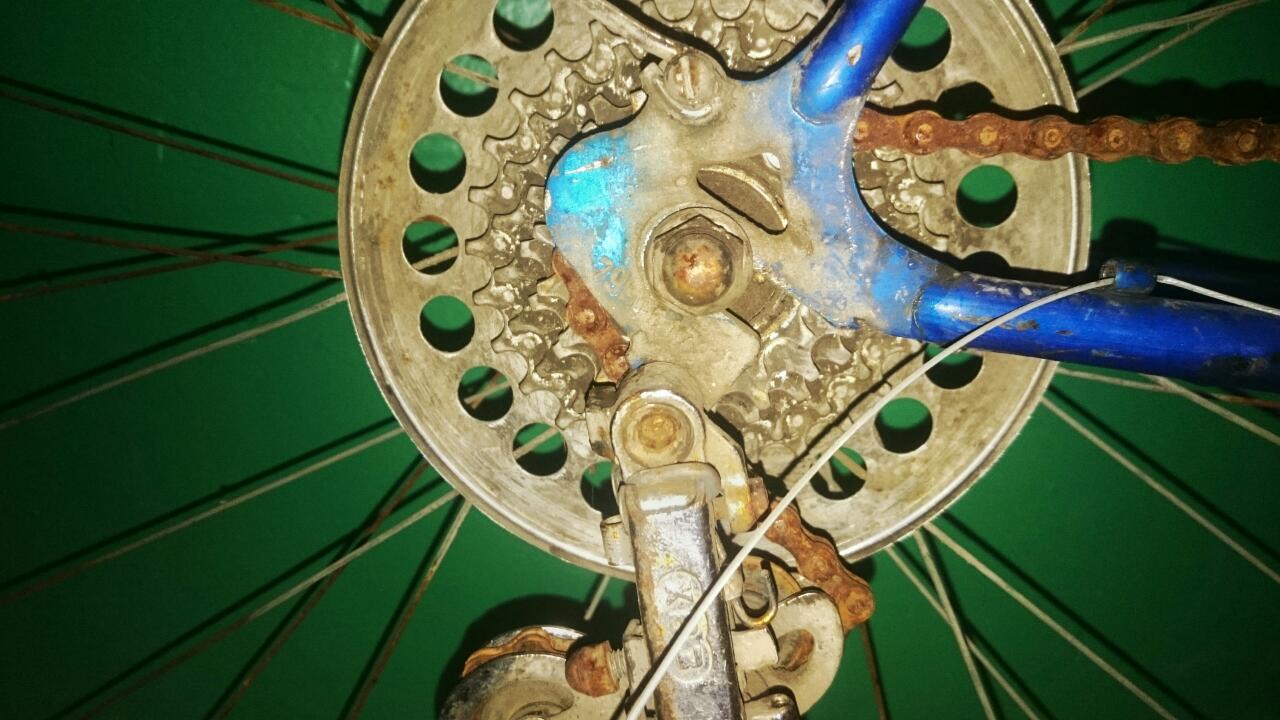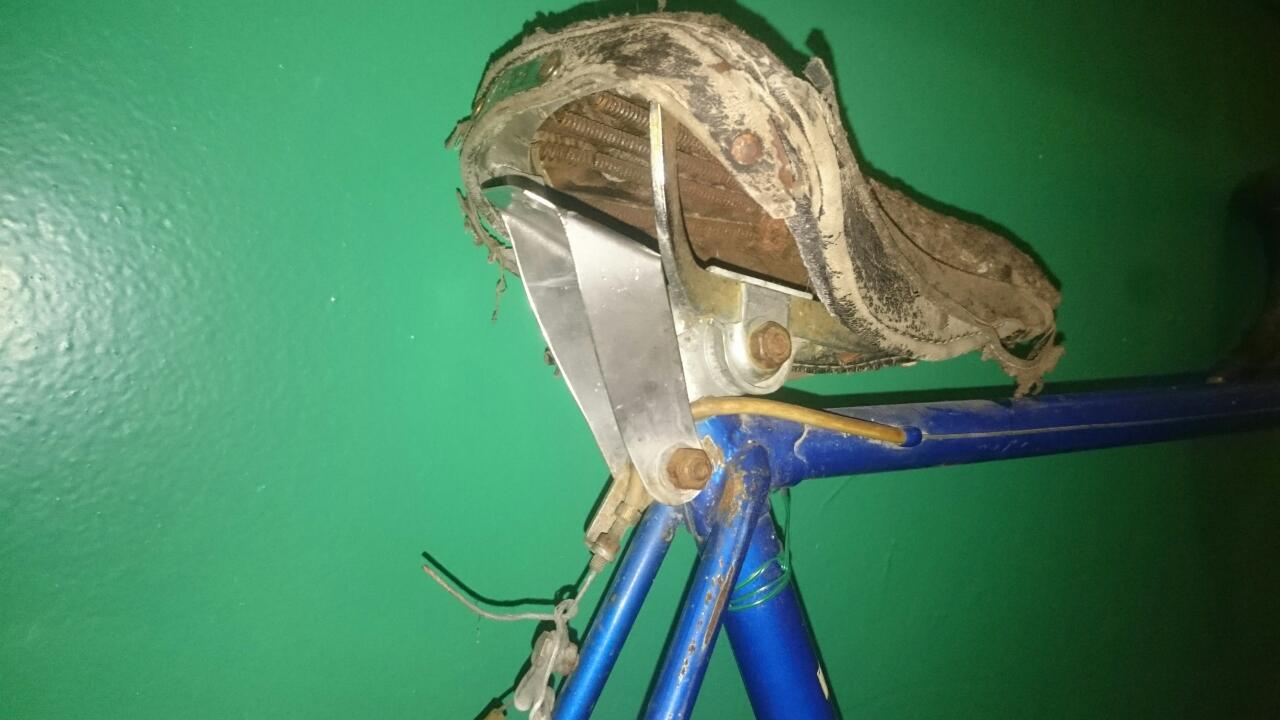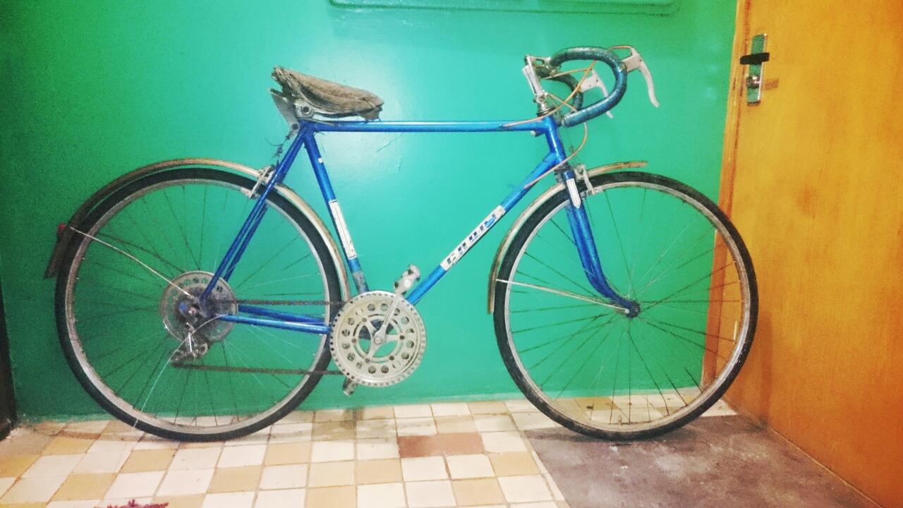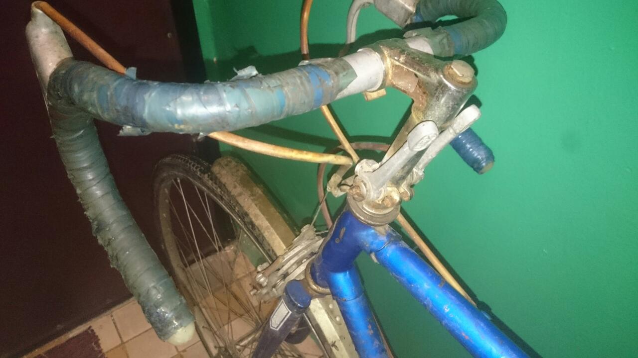 Значится нашел объявление о продаже велосипеда за сущие копейки...в объяве было сказано, на запчасти....на телефон ответил мужчина с азиатским акцентом...договорились, встретились...мужик в робе, похожий на таджика, вытащил из подсобки на улице вот этот велик...неплохая комплектность...отсутствует только перекидка на передней системе, отя в объяве была...Нашел он его в старом магазине на задворкахи забрал...поэтому название "магазинный". По работам видится замена всех спиц, тросиков и ржавых болтов...что сделать с седлом, оно восстанавливается? Цепь ржавую чем отмочить? Хромированные крылья можно в лимонке отмочить?