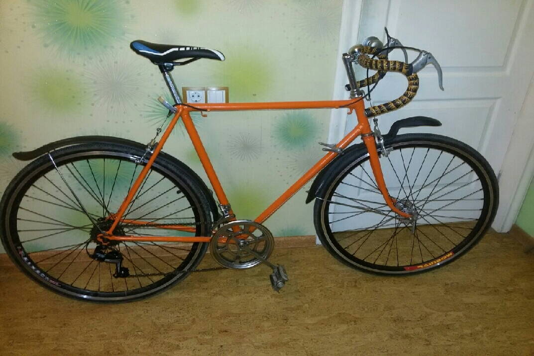 Куплены по случаям пистолеты кларис, колёса под 25 резину, система. Рама в наличии имеется турист 80 года. Чем она хороша-это бонки под упор переключателя на раме. Но стоит ли на неё вешать эту жёсткую конструкцию или поискать стартон? Так же за время пути образовался спорт 542 и старт- шоссе в 58 ростовке. Но их курочить уже неохота, рыжий уже ездит. Спорт видится ближе к оригиналу.