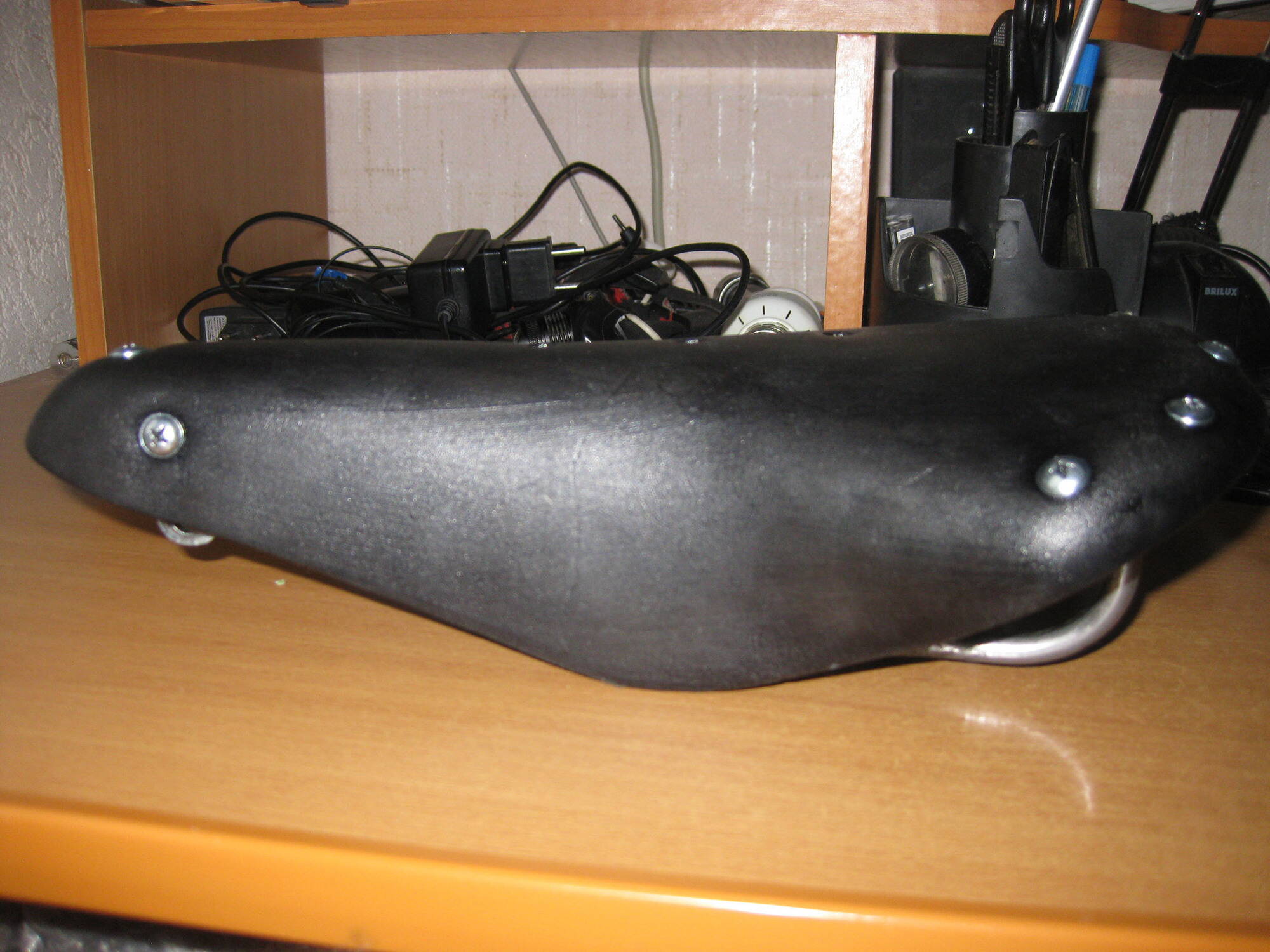 6) Купил дешевый бесцветный воск "Силвер" за 12.50 в АТБ и обработал снаружи и внутри. Седло сразу стало блестеть, но есть одно но- после "воска" поплыла краска и начала пачкать руки. Теперь беспокоюсь, чтоб седло не мазало штаны. После высыхания, по крайней мере, руки уже не пачкает.