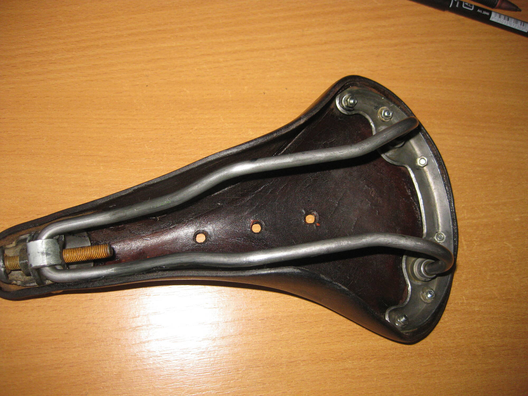 Каркас - в порошковую покраску. Сушу кожу на каркасе, ничего тогда не съезжает, если конечно закрепить болтами. Болты под крест - в топку.Как-никак ВЕЛОСИПЕДНОЕ седло, а не тракторное