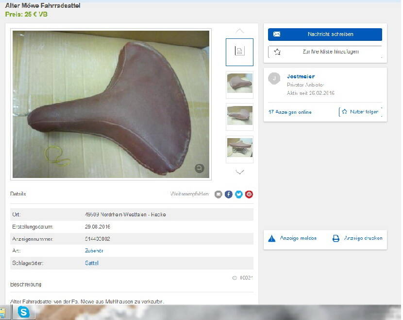 Огромное спасибо ВладК за присланные подробные фото с размерами, именно они помогли найти на немецком E-Bay, то с чего был скопирован наш велосипед и как следствие его сиденье.