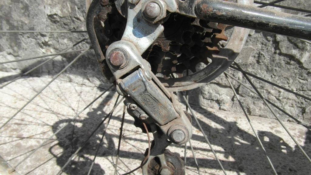 Тільки що спокійно і з ганчіркою обдивився велосипед... Цікавинки: колеса 27 дюймів, це повний капець, думаю гуму чорта з два знайдеш... на задньому ободі напис "зроблено в канаді" і 1982 :-P оце раритет, передній і вся інше навісне обладнання японське, але втулки і підсипід стальні, вага веліка достатня...