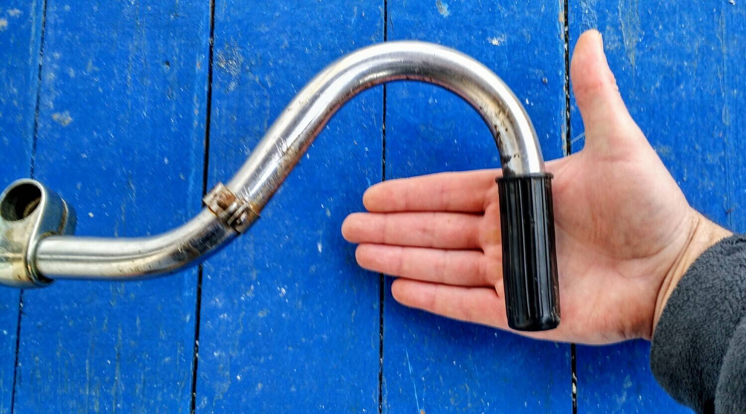 Сам руль можно нарастить, превратив его в классический мусташ. Просто доварить электричеством обрезки другого ненужного руля. Оно уйдёт под обмотку. Я также наращивал рули деревянными пробками-удлиннителями download/file.php?id=172708&mode=view/P1160195.JPG (пара в руле, пара лежит на столе) , но лучше доварить.