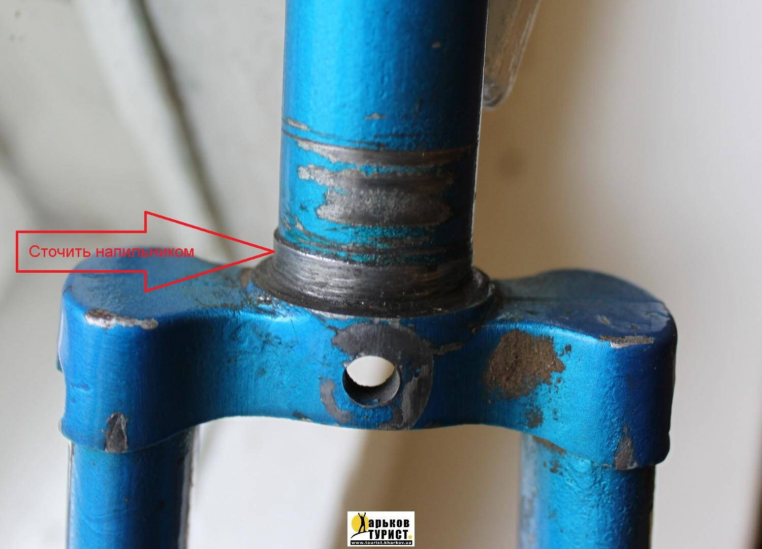 За две минуты обычным напильником стачивается лишний металл вокруг штока на вилке, чтобы кольцо село до короны.