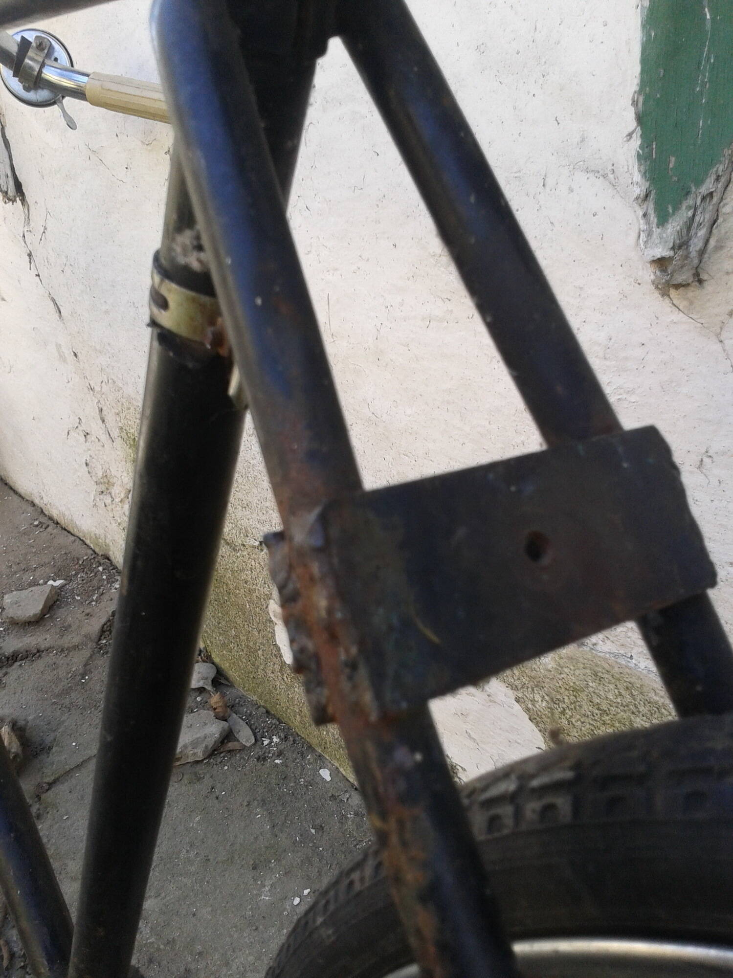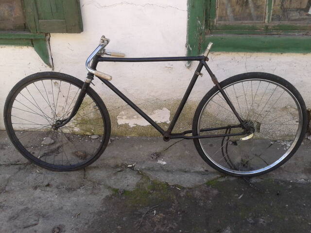 достался совершенно неожиданно и если честно то для меня было сюрпризом: дядин сотрудник делал уборку в гараже и нашел там это чудо, немного пострадавшее от кривых рук и сварки но поправимо, и хотел выкинуть его!!!! мы приехали забрать авто-зп а тут лежит он, на куче металлолома на прицепе, лежит и просится что б его вытащили от туда, сверкая на солнышке участками уцелевшей родной черной краски и звонким звоночком.