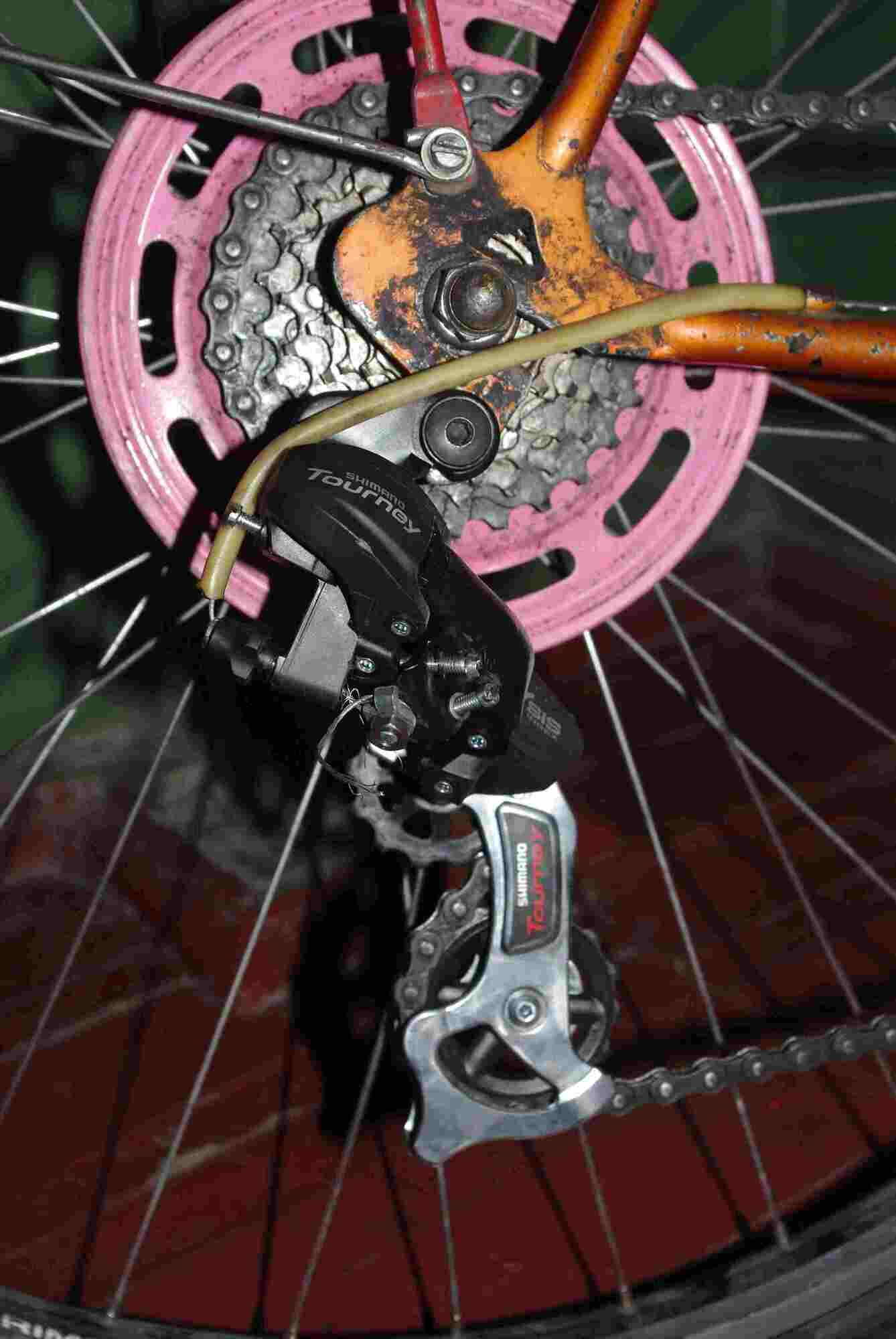 Далее, переключатель изнасилован, иначе не назвать. То ли цепь короткая, что скорее всего, то ли она на фото стоит на крайних больших звездах.