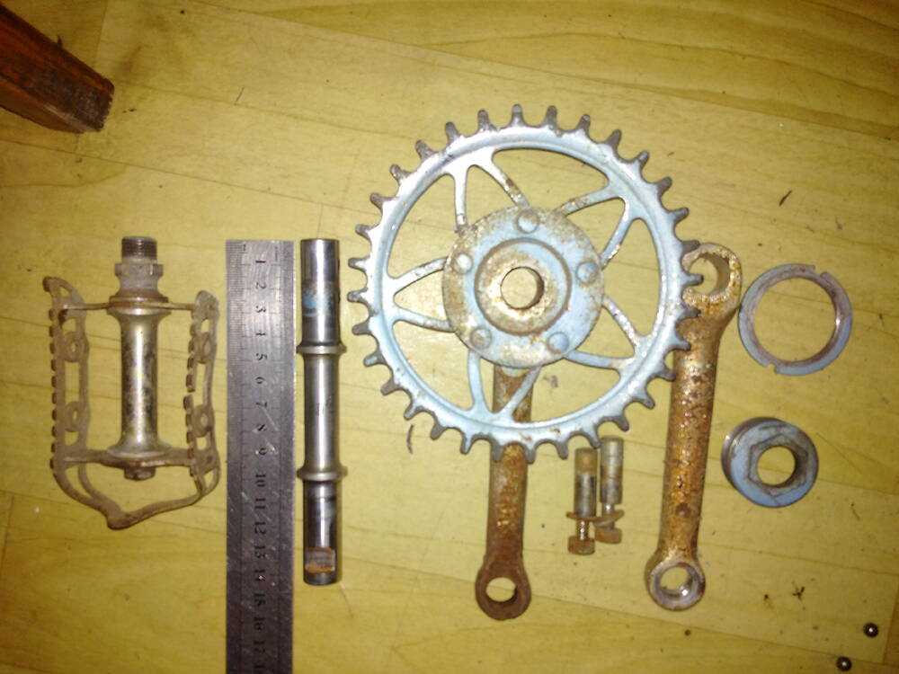 Версия № 2. Это продукт ХВЗ. Об этом намекает клеймо завода на стакане задней втулки с характерной надписью «Харьков». Такое клеймо, на сколько мне известно, ставили уже в 1950 году, поэтому в качестве диапазона дат производства рамы можно взять промежуток между 1950 – серединой 1970-х (например). Можно пофантазировать и предположить, что после перевода Новосибирского завода на исключительно военное производство и свертывания линии ЗИЧ-1, оставшиеся узлы рамы предали на ХВЗ. На пользу этой версии идут и педали – уменьшенные в размере копии благородных шоссейных педалей ХВЗ эпохи 1950-60-х