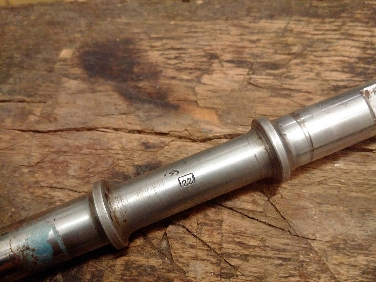 В-третьих, на меня произвела впечатление каретка. Точнее вал каретки. Он мне показался довольно тонкой работы — аккуратный, гладенький и блестящий. На привычном месте вала есть оттиск. Цифра «22» в прямоугольнике! Рядом с ним аналогичный, но менее четко прорисованный оттиск «17» в таком же прямоугольнике.