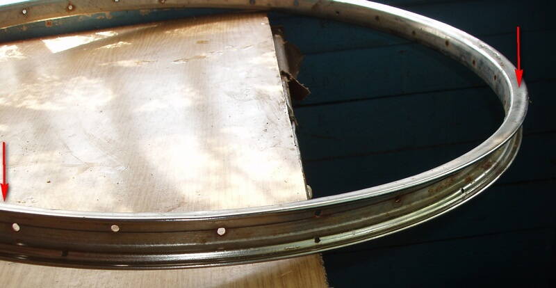 Обод, имеющий явные косяки, требующие рихтовки, в наше время проще заменить - при стоимости стального или алюминиевого дорожного обода 4-5 долларов... (это тема совсем другого разговора, но применять высокие обода при шинах толще 25 мм лично я категорически не советую нигде)