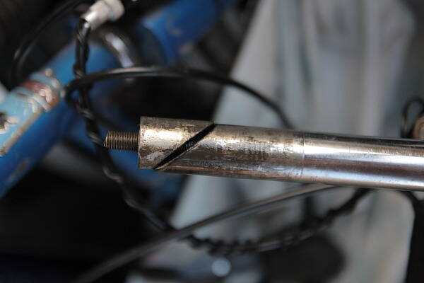 У меня похожая фигня была, с этой системой распора в трубе. Так вот проблема оказалась в том, что вместо того, что бы клин шёл по срезу, и как было задумано, клинился между трубой вилки и трубой выноса, он влазил в саму трубу выноса и таки немного её распирал, из-за чего вынос кое-как держался. И я таки сорвал резьбу :) а всё из-за того, что эта самая клиновидная гайка была отлита из какого-то говна