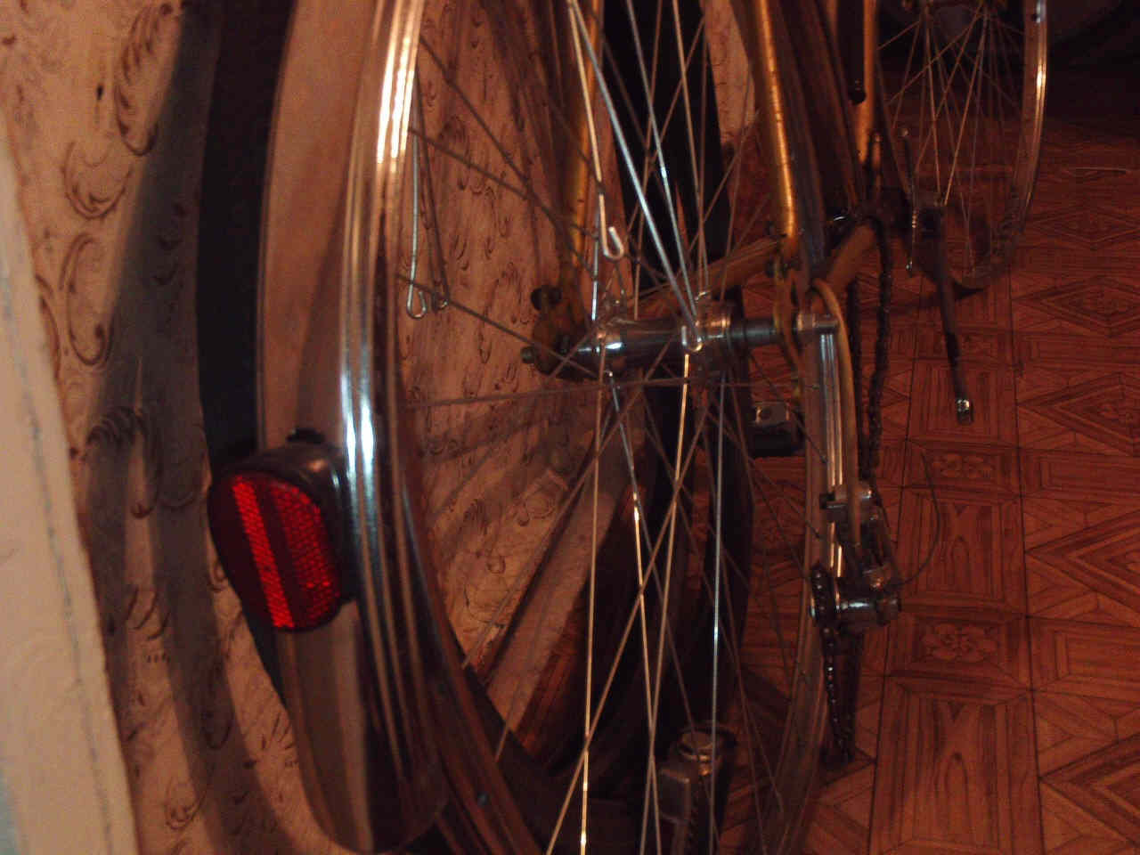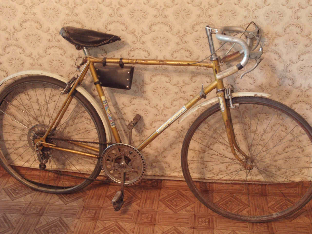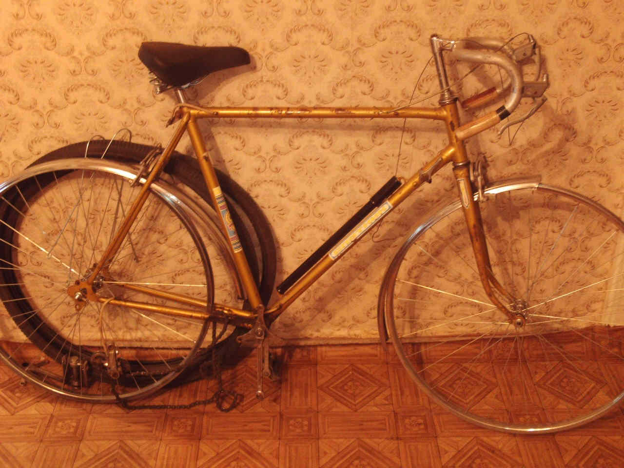 Первый этап: установлено переднее колесо фирмы ''Suzue'' (Япония, судя по гравировке на втулке) с одинарным ободом, камера и покрышка фирмы ''Street Trax'' (пр-во Германия, 80-х годов выпуска, отличного качества), новое переднее крыло от ''Украины'' 2009-го года выпуска...