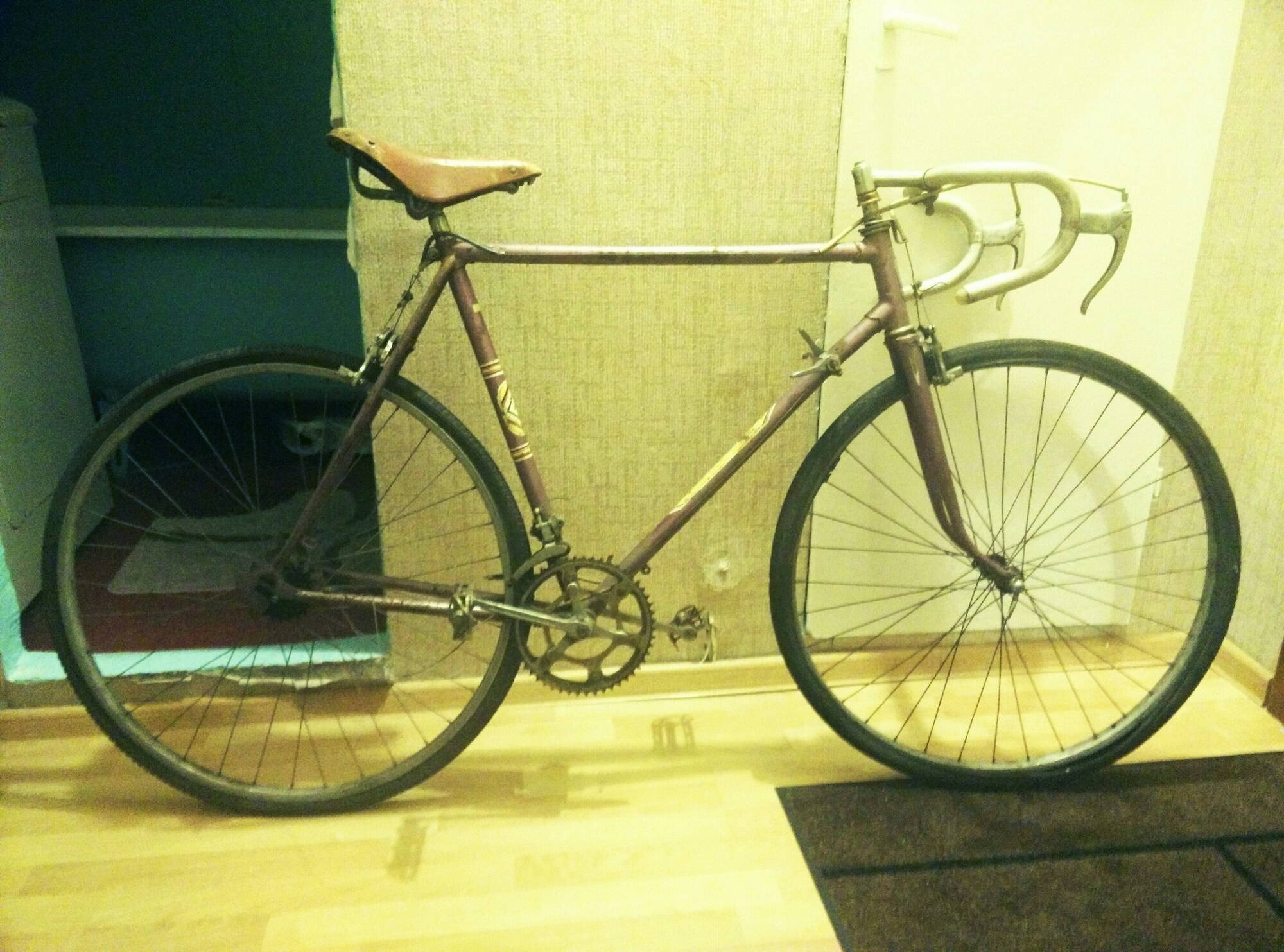 Боюсь что все не удастся оставить в оригинале,так как сейчас буду пескоструить раму, латать небольшие дырочки и перекрашивать в белый цвет. так же будет замена колес на импортные с шимановскими втулками, замена переключателя скоростей и замена касеты.