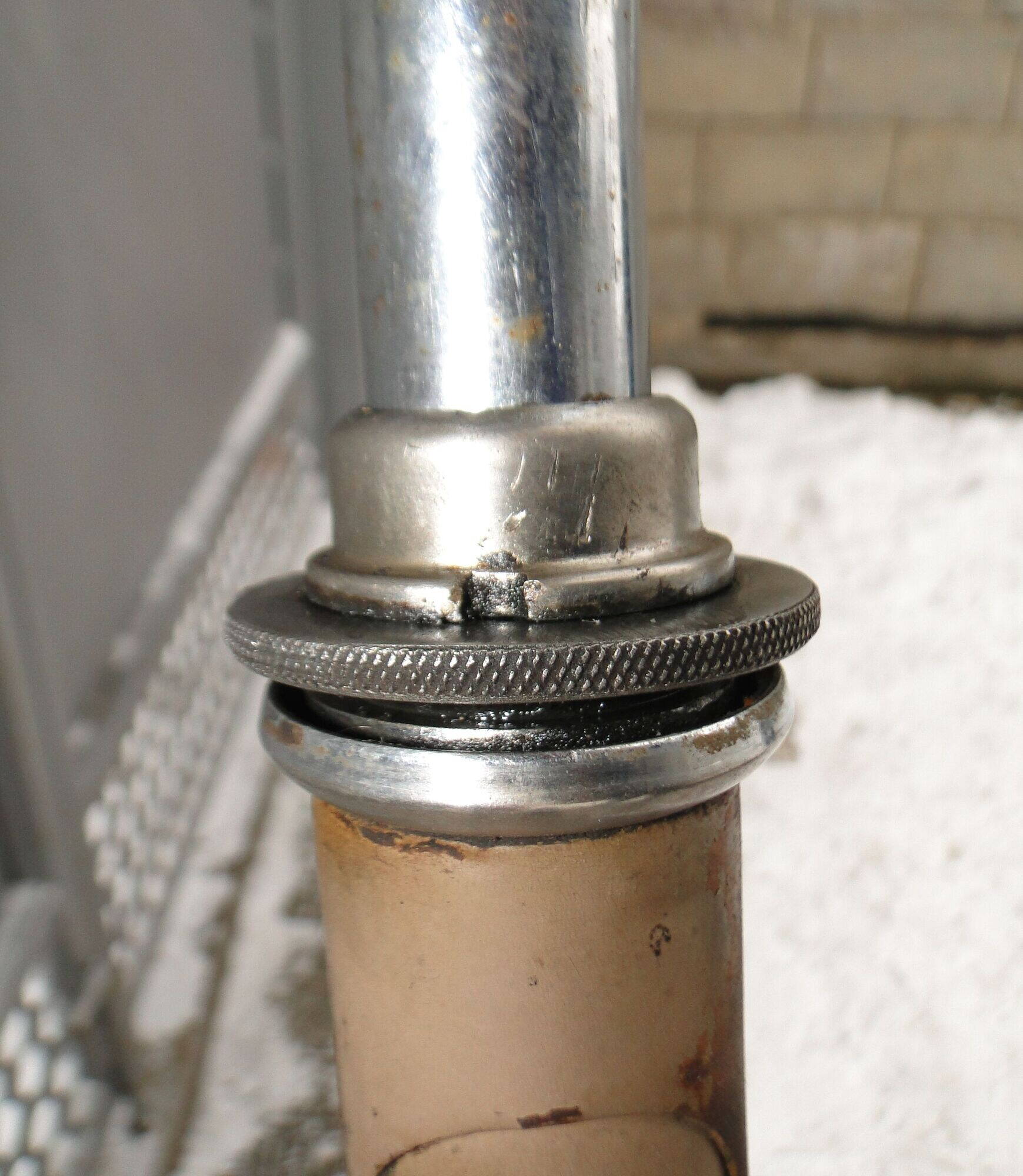 Но и это бы ничего (можно прибегнуть к сварке, пайке и т.п. "реанимации"). Но разобрав кареточный узел, выяснилось, что на 1 стороне резьба - в идеале (фото №1), а на противоположной - какой-то нехороший человек, тупо вбил туда чашечку (фото №2). Просто по резьбе, как гвоздь. В связи с этим первая рама была забракована.