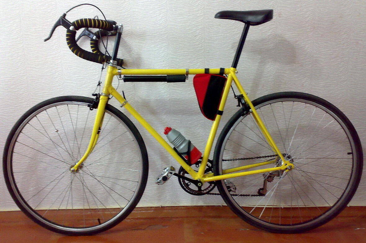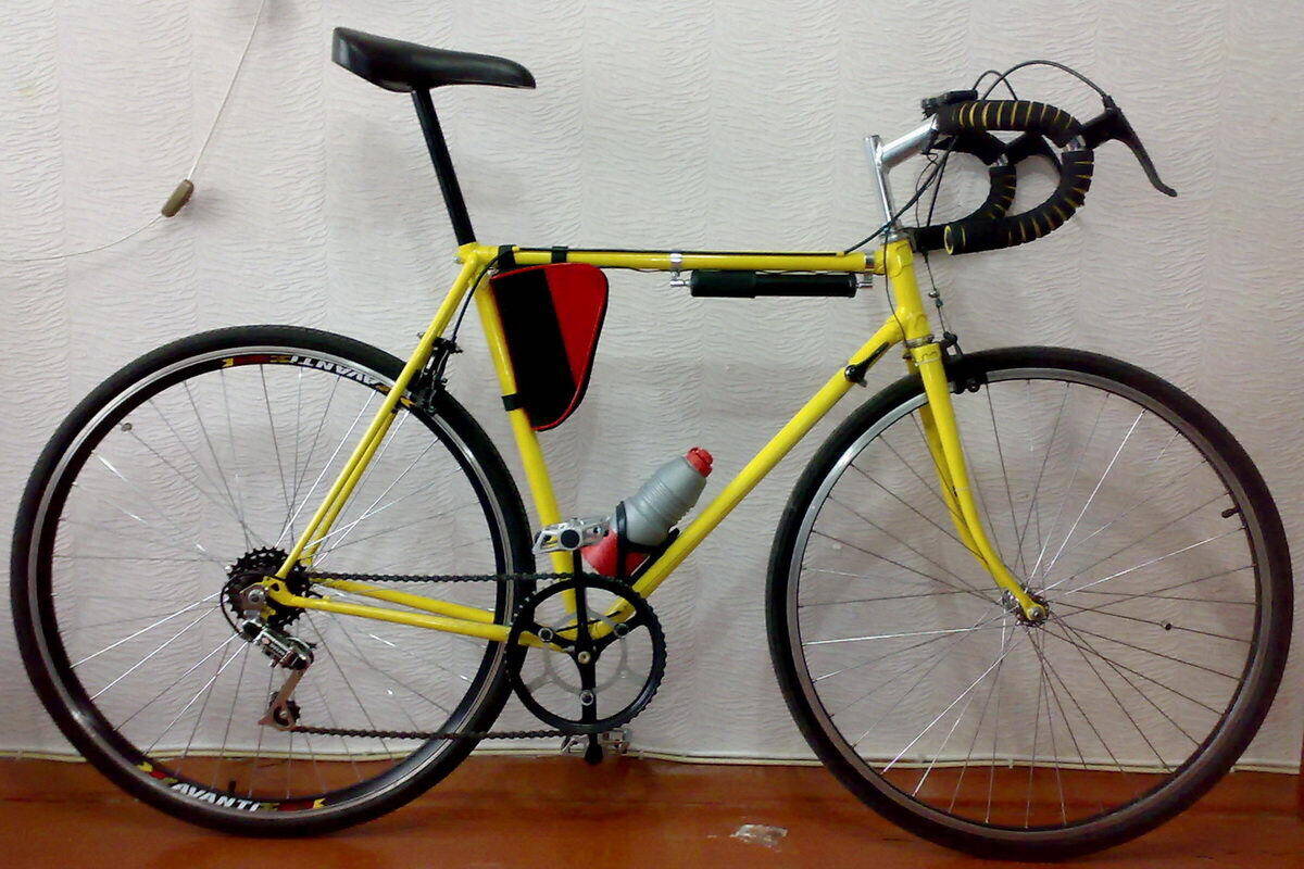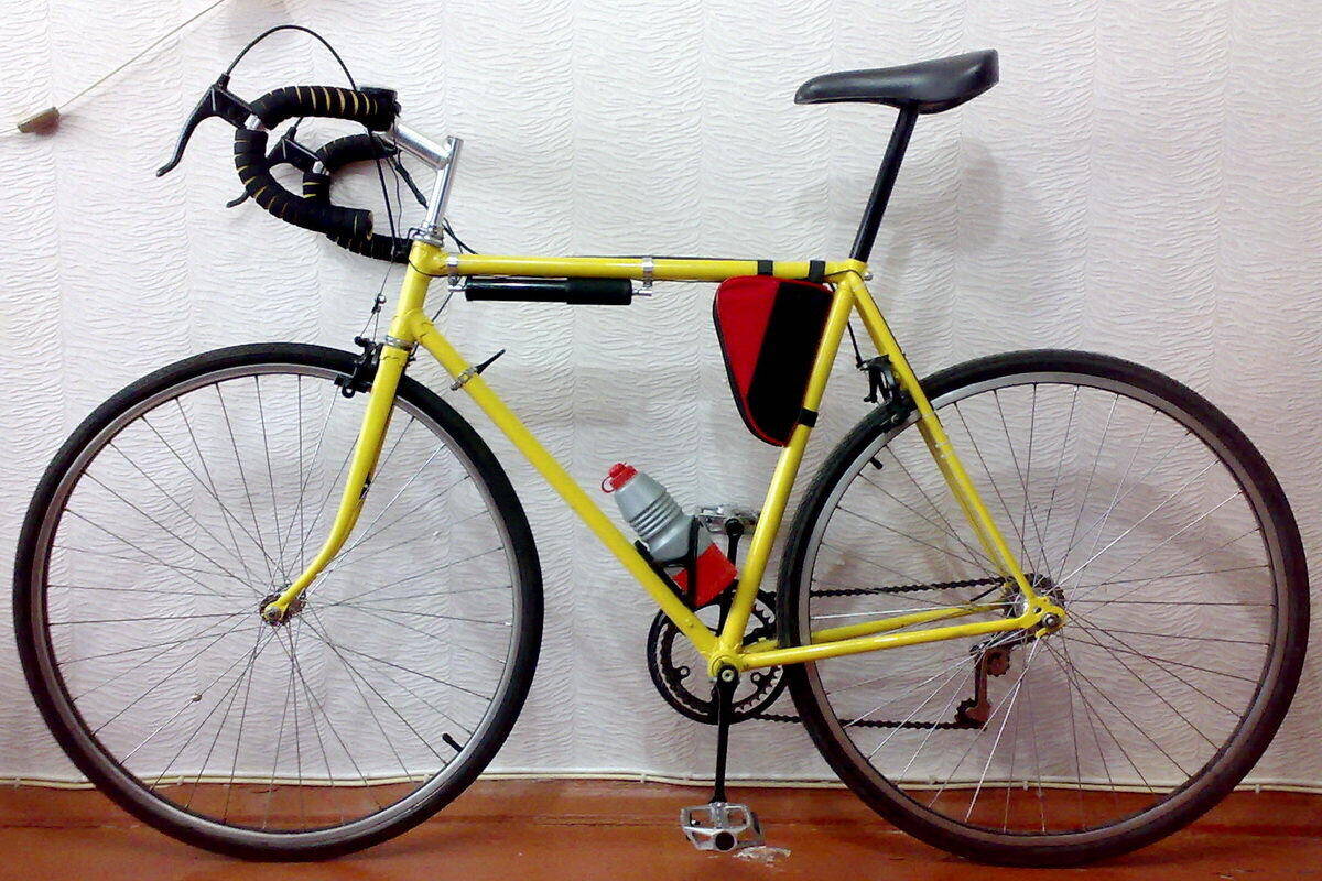 Первый мой велик ("ЗаЙец" и "Гном" не в счёт ) был ужосом типа "Украины" с открытой рамой, возил меня 2 года, после чего захотелось чего-то более спортивного :smile: И я купил в 2003 за 140 грн то, что можно с большой натяжкой назвать "Старт-шоссе" (фото 1). Рама 56, маловата для меня, но это не обувь, не жмёт и ладно. Опыта тогда было мало, по великам с передачами - ноль. Но всё же собрал и начал кататься.