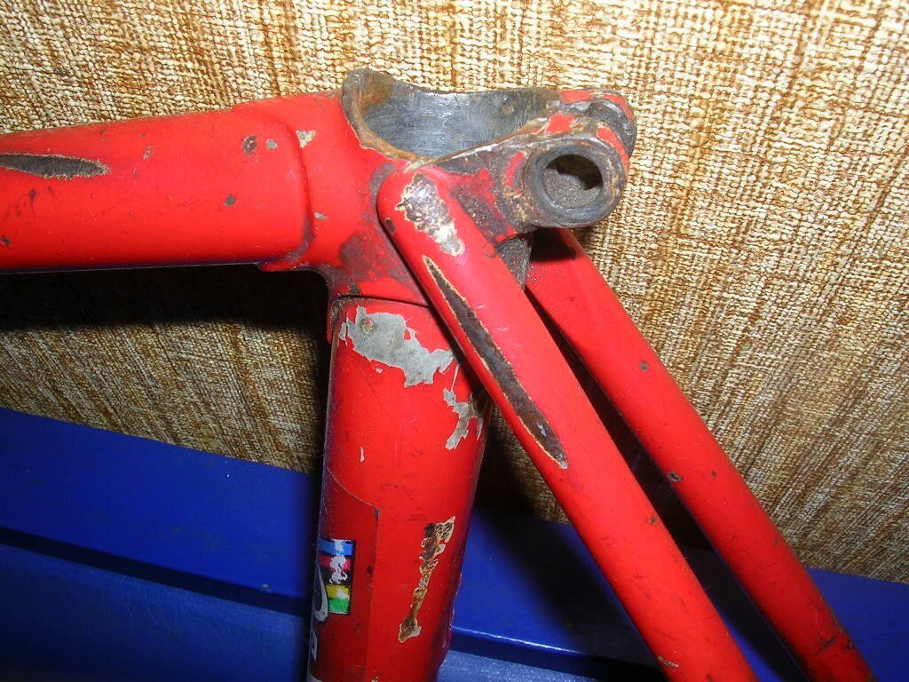 Рама естественно не Кольнаго. Видимо хозяин был, любителем этой итальянской марки. Проблем с рамой очень много. Рама боевая, вмятина на вмятине. Плюс дыра в подседельной трубе.