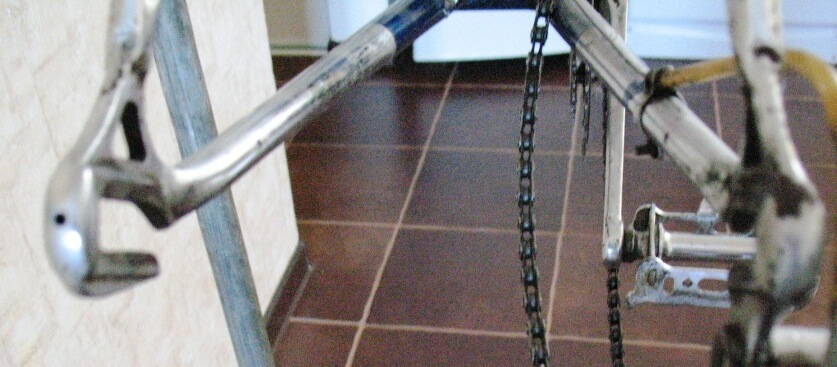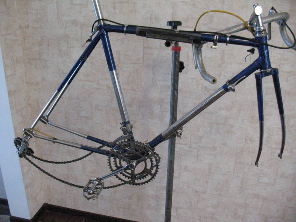 Но для начала общее впечатление.Даже беглого взгляда достаточно, что это ВЕЩЬ!!! Вел не ординарный, 55 лет, винтаж, а дропы, как новые.Вероятно был полностью "хромовый", но потом вероятно, частично и довольно хорошо, покрыт автоэмалью. Вел достался человеку, из запасников местного спортклуба в полуобразованном виде. Хозяин, человек довольно занятой, попросил меня привести его в рабочее состояние и по возможности ничего не сломать :smile: , но "не навреди" это принцип вообще всех докторов, не исключая и Доктора.С :D