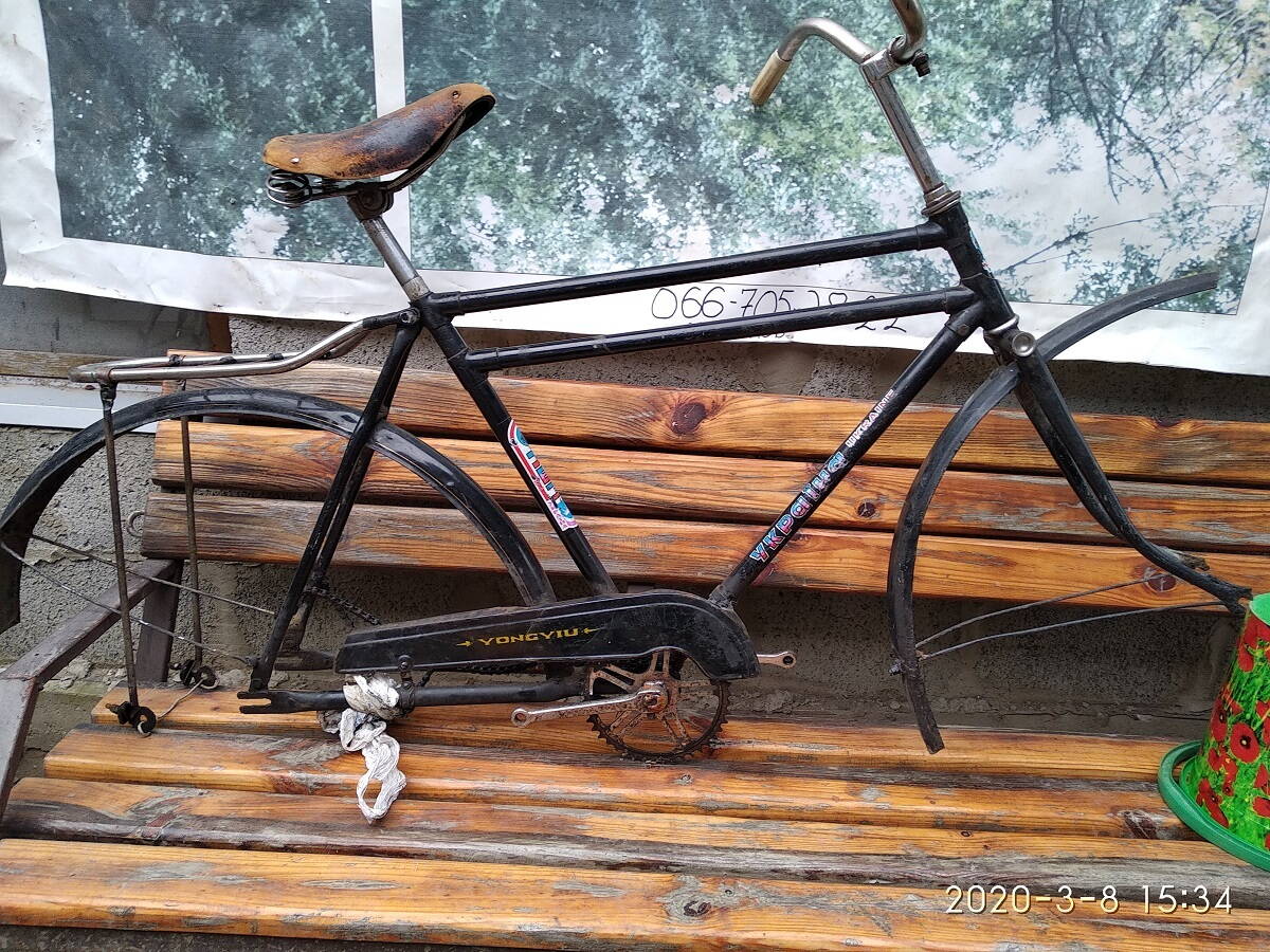 Стоит совсем недорого :facepalm: ну начнем снимать с него то что не принадлжит по моему скромному мнению оригиналу Флайдрагона. а именно. седло с подседлом от украйны, руль оттудаже,каретка(судя по рассказу предыдущего власника тоже левая). так же планирую снять краску (надеюсь пресловутый баллон) небольшой реставрации названия если очень надесб что сохранилось под слоем черной краски и наклейки. иначе ХЗ че это ваще :eek: