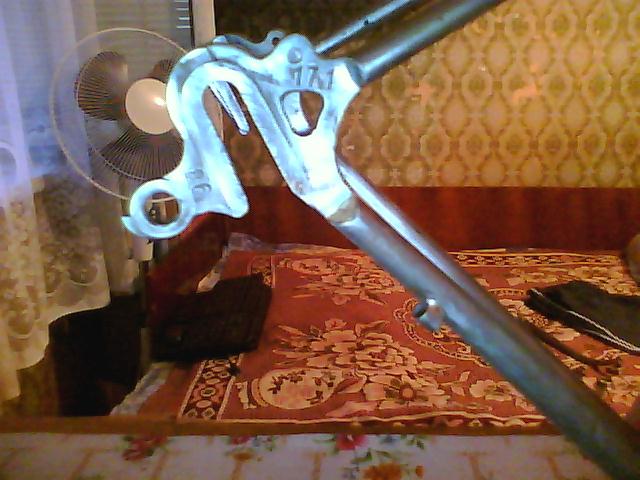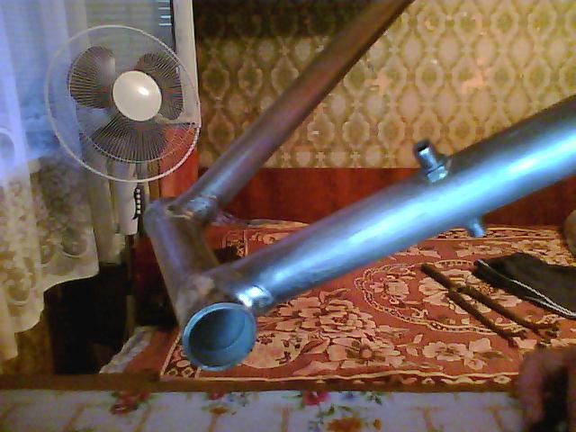 И совсем забыл, когда отчищал ржавчину (рама была покрашена в синий цвет, под ней грунтовка, а под ней ещё один слой походу был родной краски - впечатление будто взяли и не зачищая перекрасили), то под ней обнаружил совершенно немножко тёмно крассной краски и остатки черно-белых декалей, но разобрать что написано не получилось (осталась походу наклеечка только от последней буквы, но какая я не понял) - жаль что не сфоткал((((