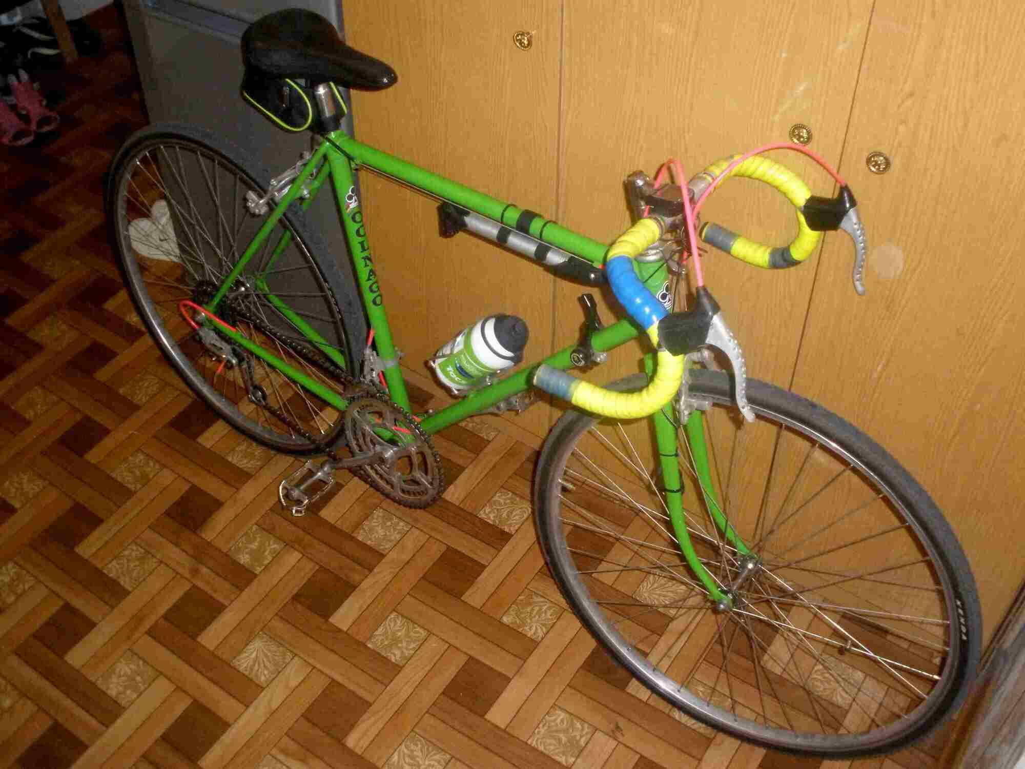 Здравствуйте уважаемые форумчане. Хочу представить Вам свой велосипед Старт-шоссе 90го года выпуска. Достался он мне за 350 грн. практически в таком состоянии как вы видите, только докупил держатель и бутыку, насос и сумочку, велокомп и покрышки. Ростовка рамы 52см, катаюсь уже второе лето и в целом им доволен. Ну и немного детальнее о компонентах: