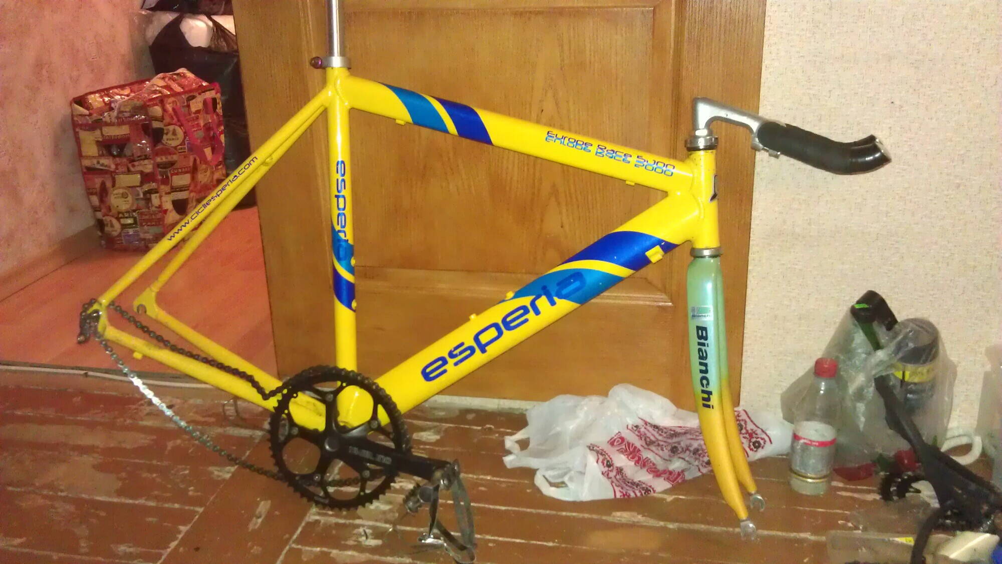 фреймсет 54рост, рама алюминий,вилка карбон бьянчи, с рулевой(новая епох мори Япония),кареткой шимано на промах,и подседелом 1400