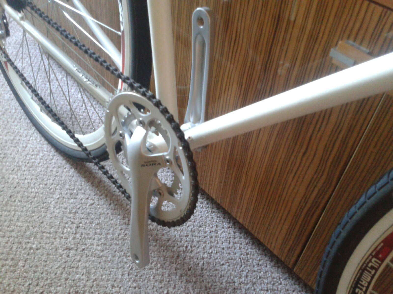 - установлена каретка и шатуны Шимано Сора,