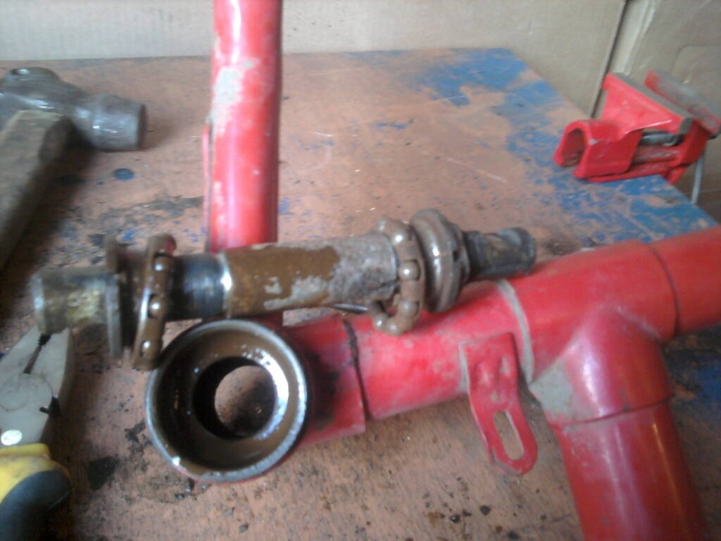 В связи с очень малым диаметром колеса нужно выбрать самый маленький диск, который только будет в продаже - типа задний с детского "горного" - такого будет более чем достаточно. Если уж мощный дисковый тормоз большого диатметра успешно работает на дорожной вилке, на этой короткой и толстой супердубовой вообще переживать не о чем. Кстати, под широкие современные (или стартоновскую) втулки разгибать такую вилку - та ещё работа :yes: Подзаеб... мучился. Делал это шпилькой М10 (щели в дропах тоже пришлось распилить под более толстую ось) с гайками и шайбами.