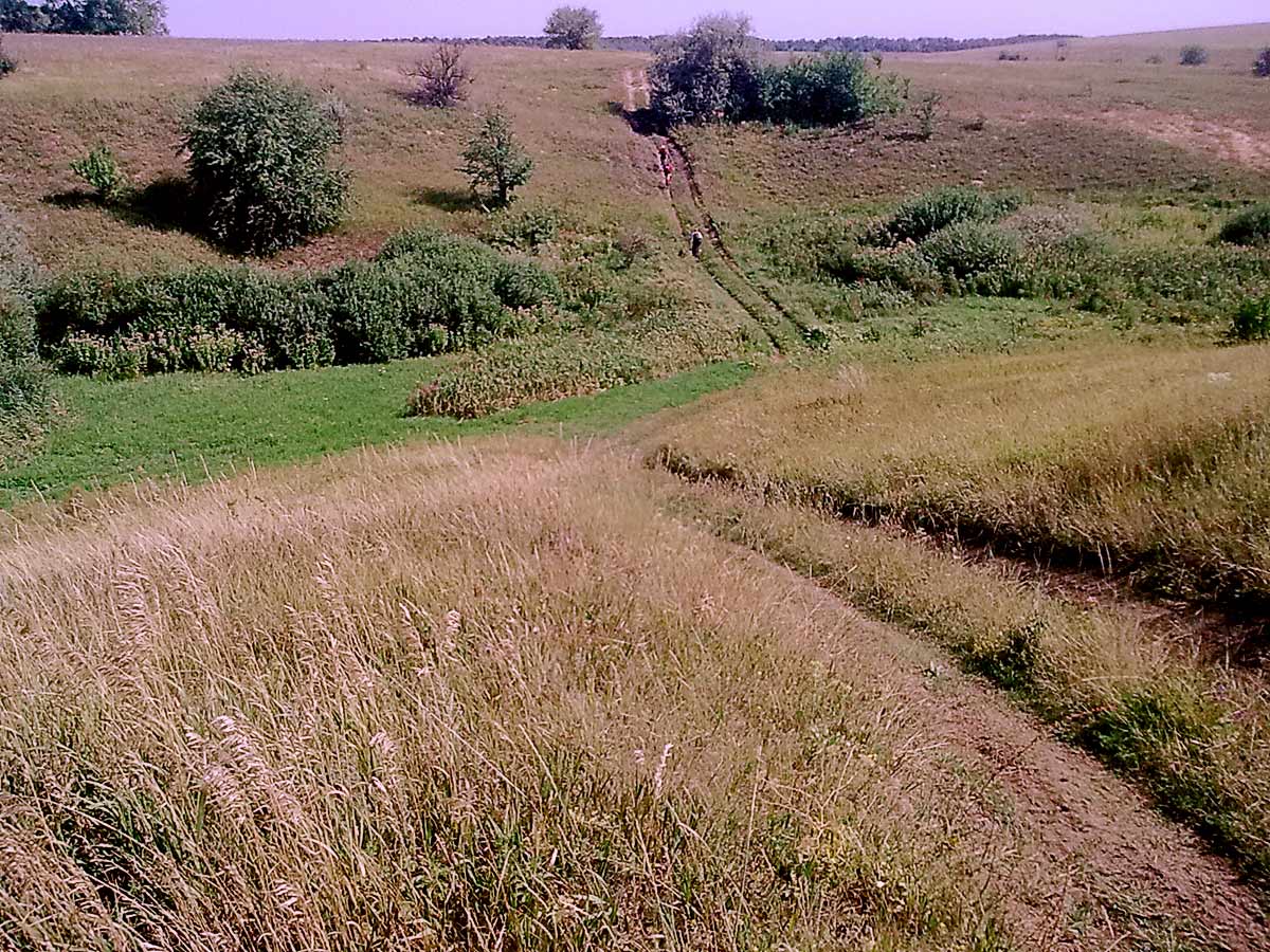 Маршрут простой: по трассе до Рогани, налево, вдоль прудов выезжаем в поля, по полям едем до пруда в Каменной Яруге, там привал, живое обсуждение всей этой темы, после которого каждый, наверное, сможет для себя решить нужно ли ему участвовать в таких покатушках, или лучше ездить своей компанией, или с молодёжью. Дальше, через поля и живописные овраги попадаем к Казачьему пруду, оттуда мимо Малой Рогани, через сады, попадаем в Дробицкий яр, дальше финиш, там где и старт.