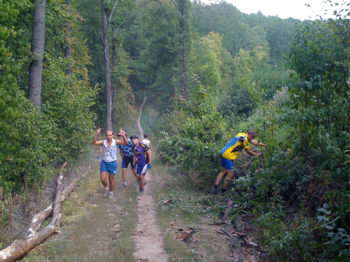 А те, кто двинулись на Жуки, и я в том числе, хорошо промокли начиная от родника возле озера. Выехав на дорогу, лужи помогали намочить то, что не успел дождь. Хорошо, что вода была тёплая. Так что после такой жары приятно было прокатиться под дождиком.