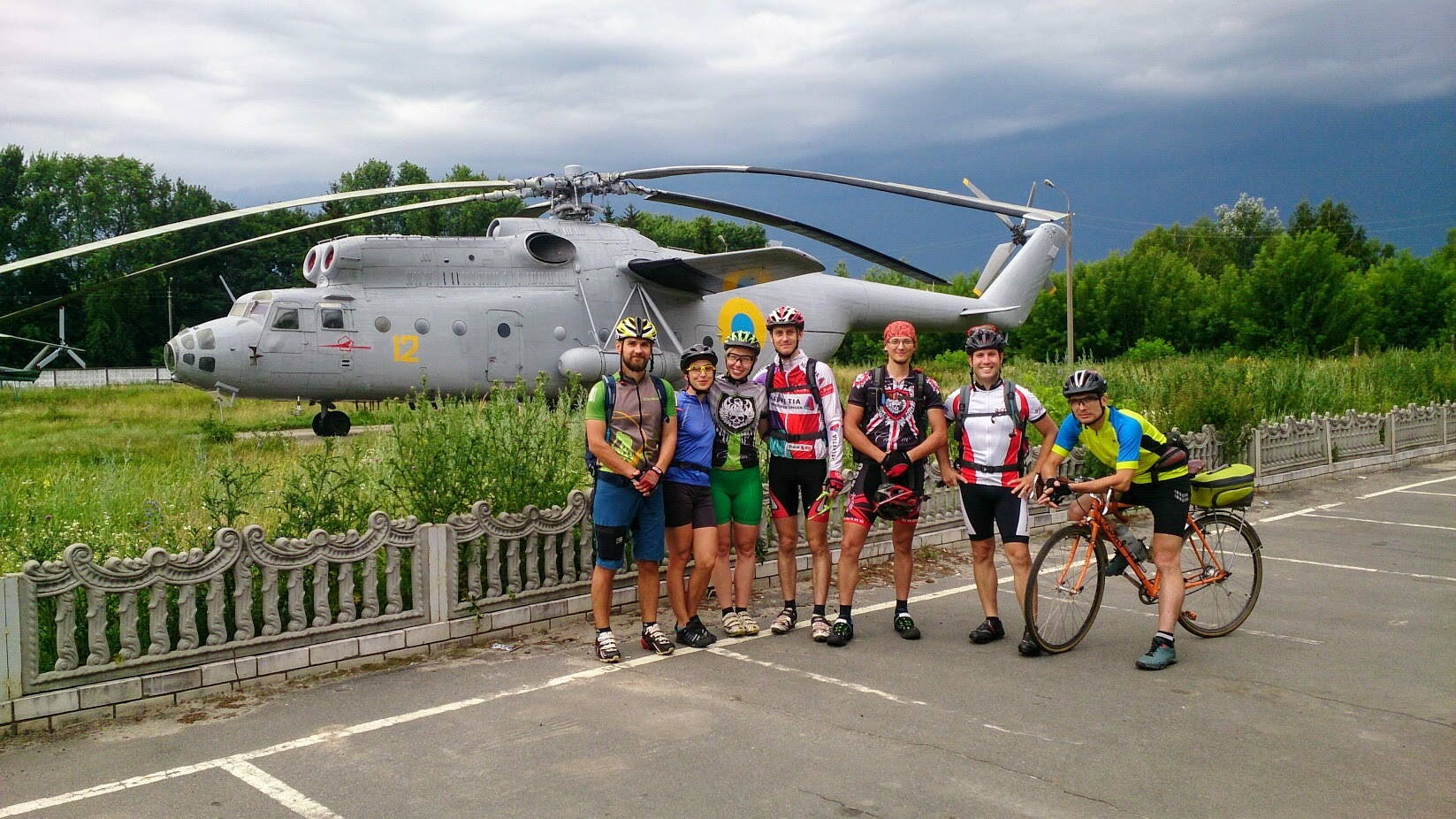 Раннее утро в Конотопе при выходе из поезда оказалось пасмурным, не придали этому значение, ведь же начало дня и по прогнозу другая картина должна же быть :). В начале маршрута из-за забора посмотрели на экспонаты авиамузея и взяли курс на Батурин. Небо темнело, слышен гром и все тучи идут попутно с нами. На въезде уже в Батурин из-за поломки кареточного узла у нас -1 участник :( (ему пришлось вернуться обратно в Харьков из-за невозможности как-то починить поломку на месте). Все наше время пребывания в Батурине сопровождал мелкий дождь. Осмотрели все главные достопримечательности гетманской столицы: Кочубеевский парк, цитадель Батуринской крепости, скульптурные композиции, дворец Розумовского. Дальше наш путь шел второстепенными дорогами и грунтами параллельно трассе Е101/М02. Но тут погода резко начала менять наши планы по маршруту уже с грозой и ливневым дождём, выдавливая нас все же на Е101 (дождь/20 мин. окно/снова дождь), что нам в итоге и пришлось сделать на 1/3 расстояния до Кролевца, места нашего ночлега и финиша 1-го дня. Пережидая сильные ливни и грозу то в сарае полузаброшенного хутора, то вдоль трассы на автобусных остановках добрались до солнечного Кролевца, где по рассказам местных 2 месяца уже не было дождей :-P.