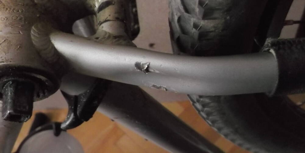 На вид вроде бы ничего страшного, у меня с неправильно отрегулированным переклюком, когда то цепь затягивало регулярно, один раз с досады выбил её ногой по педали, так что цепь погнулась.. Перо порезало почти до сквозной дырки. Забил, залепил холодной сваркой и больше не нервничаю :smile: