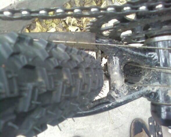 Рама куплена в Харькове, случайно. Начитавшись на форумах о магниевых рамах и их ходовых св-вах, захотелось купить и попробовать на себе. В результате поисков была найдена эта рама. Она была без креплений для тросиков и без краски. Покрасил у нас, в Днепрозержинске, порошковой краской. Крепления для тросиков решил пустить через низ, чтобы освободить верхнюю трубу. Позже выяснилось (когда были куплены покрышки) что при установке покрышки 2,1" она упирается в передний переключатель (слишком широкая рамка). Пришлось сделать "даунгрэйд", передний переклюк Deor LX был заменен на старый полностью железный, но в хорошем состоянии с малым пробегом, Alivio (у него принцип работы как у шоссейных переклюков и он под нижнюю тягу). Пришлось над ним немного поиздеваться. В результате чего он стал весить 135 грамм (меньше чем LX) и налазить на эту трубу 32мм. Изначально был под трубу 28мм или что-то около того. При верхнем расположении тросиков даже не знаю что бы я делал. Крепления для скоростных тросиков приклеил эпоксидной смолой. Тот, который на пере держится, те что на рулевой колонке отпали, нужно что-то придумать. Крепления для заднего тормоза на заклепках.