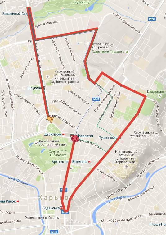 Комментарий к файлу: Короткий маршрут: Динамовская - Сумская - пл. Свободы 6,50 км