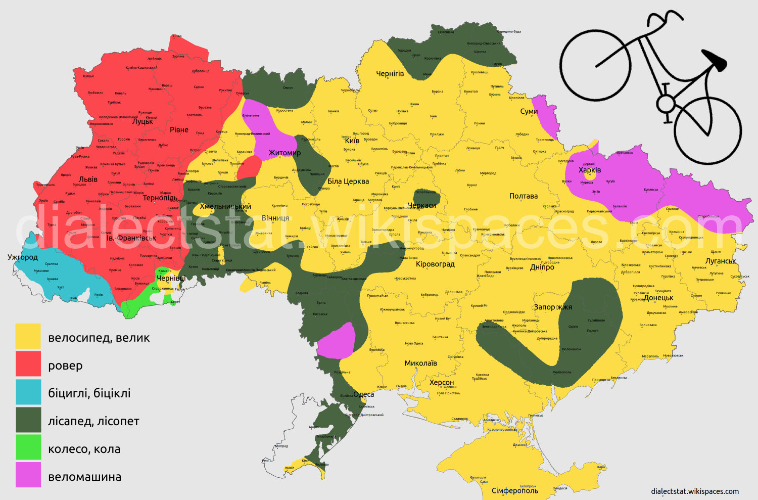Вперше в історії, різні назви "велосипеда" в Україні. Якщо побачите якісь невідповідності, дайте знати.