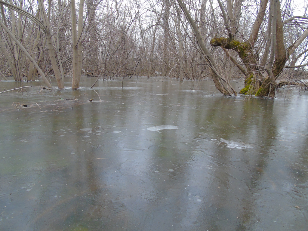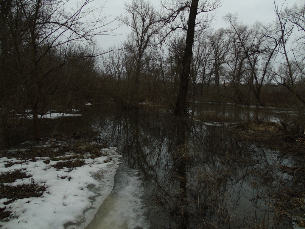 03.07.2026 — весенний паводок на велотропе, в некоторых местах, воды было по колено, вода текла на тропу прямо с речки.