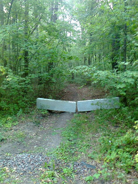Тропу между Белгородским шоссе и Отрадным перегородили двумя бетонными блоками.