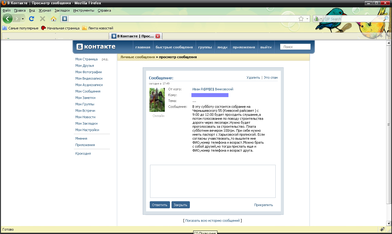 Сообщения: 2040 Изображения: 1 Город: Харьков, Холодная гора Пол: Возраст: 41 Зарегистрирован:26.12.2008 |