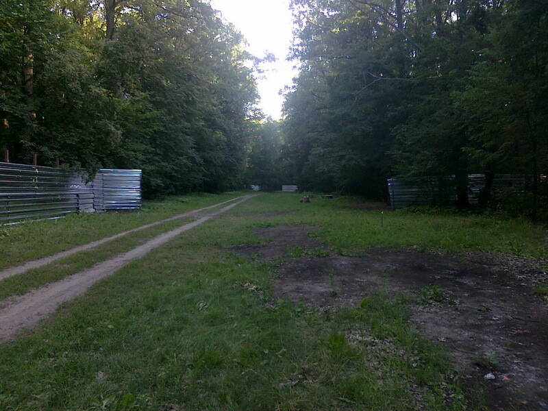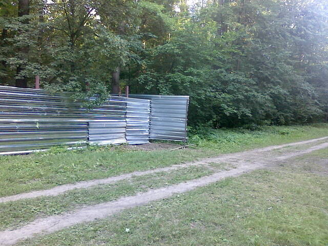Вчера вечером был в том месте, куда в среду журналистов водили (Зенитовская поляна). За прошедшие дни забор продолжали строить и он замкнул круг. Оставили пока что проходы по просекам и основным дорогам.